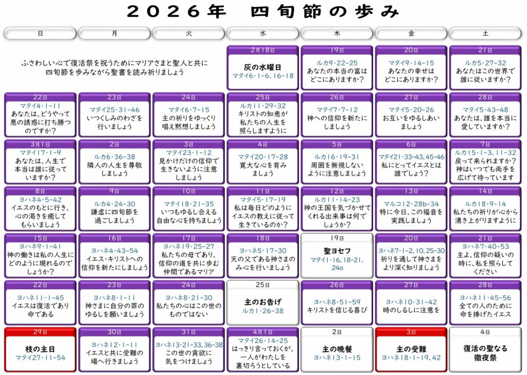 2026年 四旬節のカレンダー