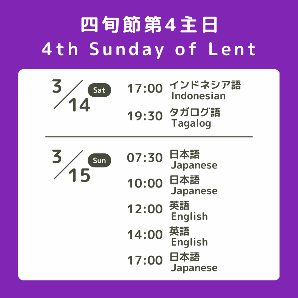【四旬節第4主日のミサ スケジュール】